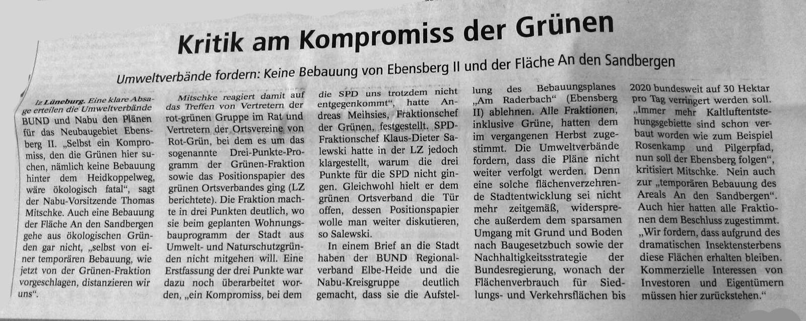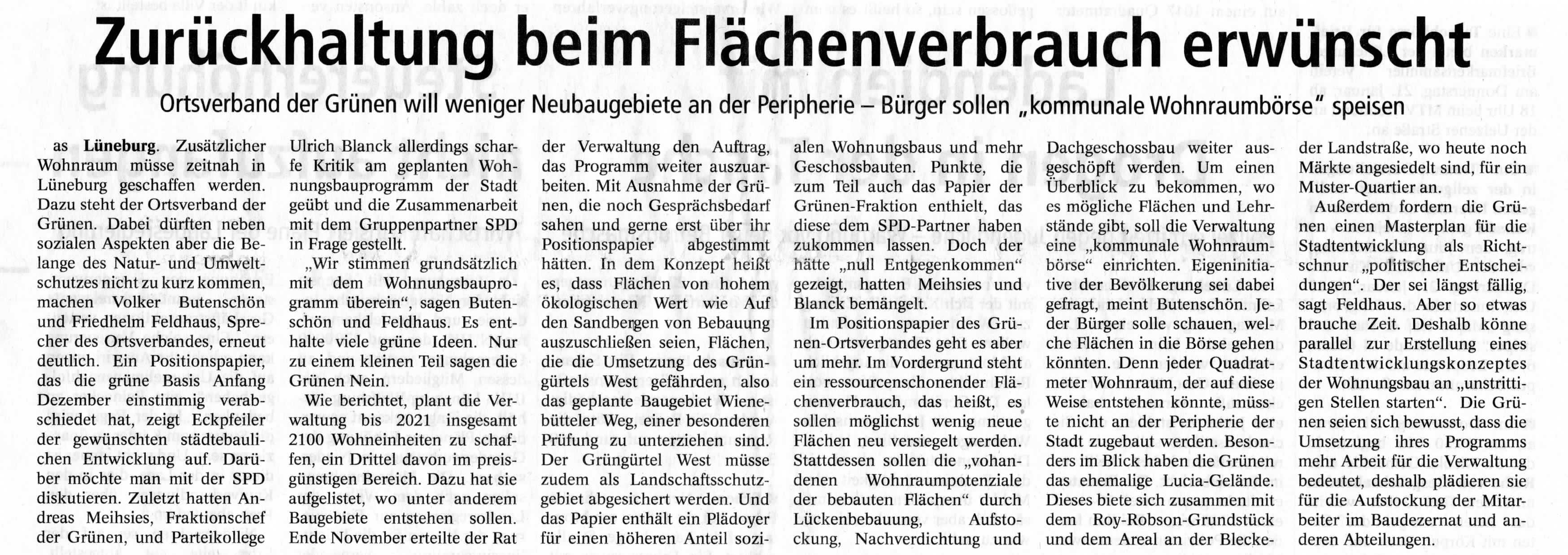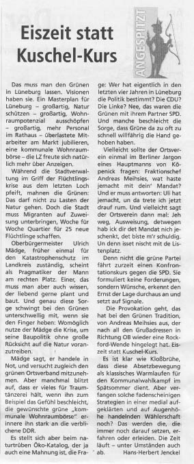 05.02.2016 | Artikel "Grüne Soloeinlage im Rat" (Link) | Quelle: Landeszeitung für die Lüneburger Heide |