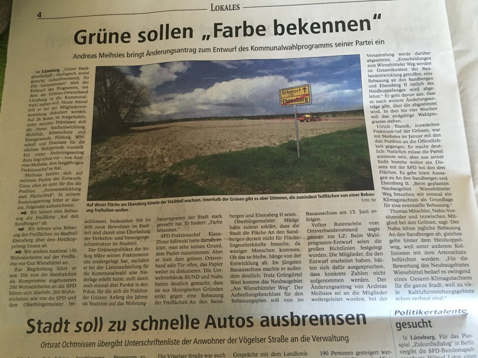 02.06.2016 | Grüne sollen "Farbe bekennen" (Foto) | Quelle: Landeszeitung für die Lüneburger Heide |