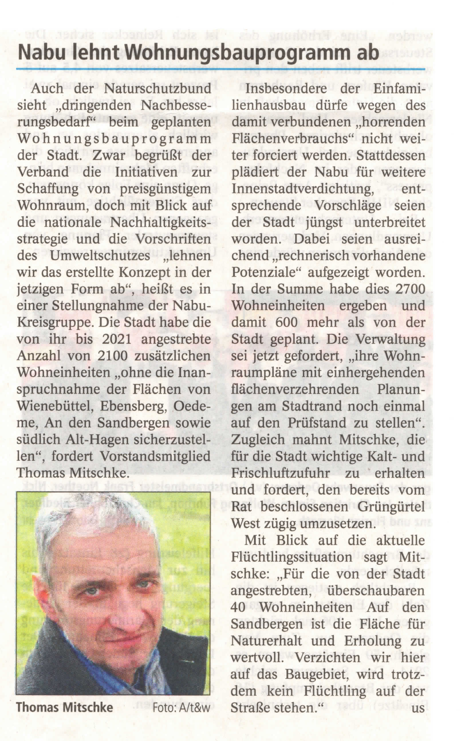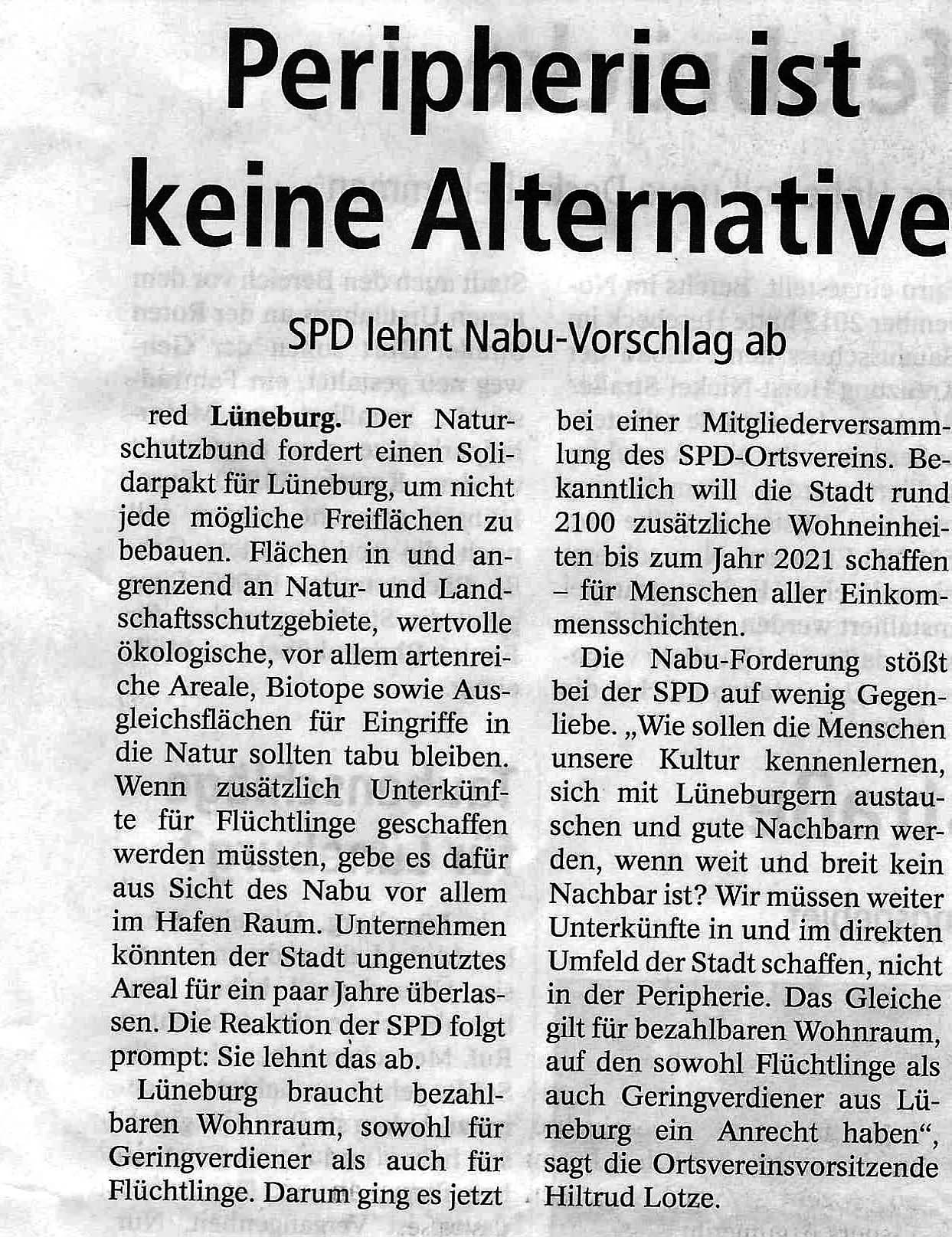 20.01.2016 | Artikel "NABU lehnt Wohnungsbauprogramm ab" (Foto) & (Link) | Quelle: Landeszeitung für die Lüneburger Heide |