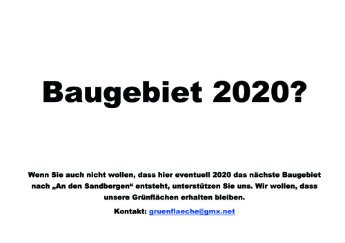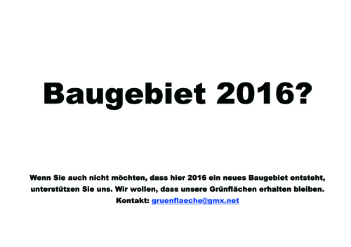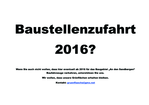 11.12.2015 | Plakataktion Baugebiet 2016?, Baugebiet 2020? & Baustellenzufahrt 2016? | |