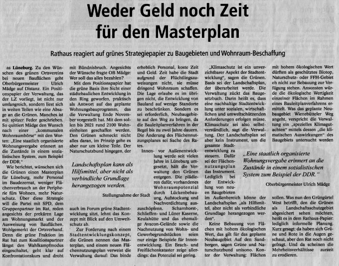 23.01.2016 | Artikel "Weder Geld noch Zeit für den Masterplan" (Foto) | Quelle: Landeszeitung für die Lüneburger Heide |